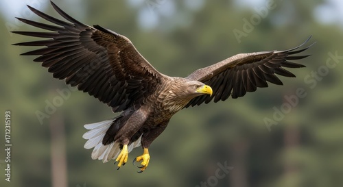 © MST, Obraz premium Majestic White Tailed Eagle Soars Through Forest Sky