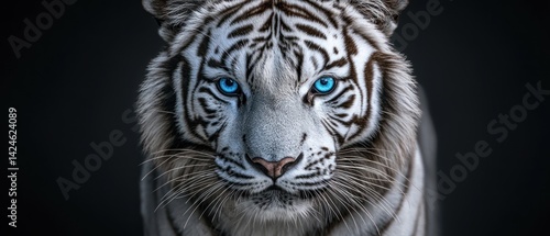 © afridwi, Fototapeta premium Majestic White Tiger with Piercing Blue Eyes