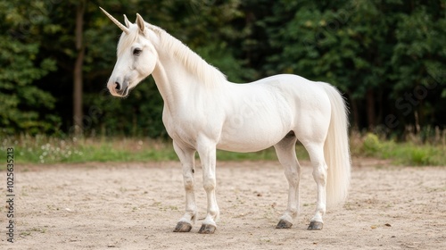 Obraz premium Majestic white unicorn standing in a forest