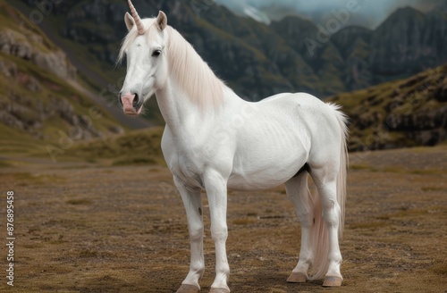 Obraz premium majestic white unicorn standing in a mountain landscape