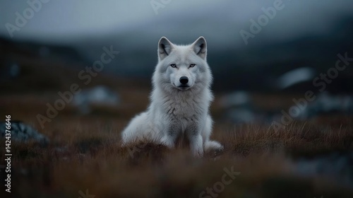 Obraz premium Majestic white wolf in a serene landscape