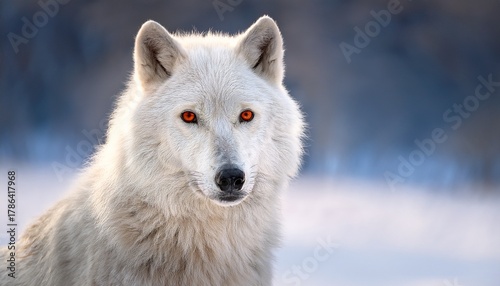 Obraz premium Majestic White Wolf In Serene Snowy Landscape With Striking Red Eyes
