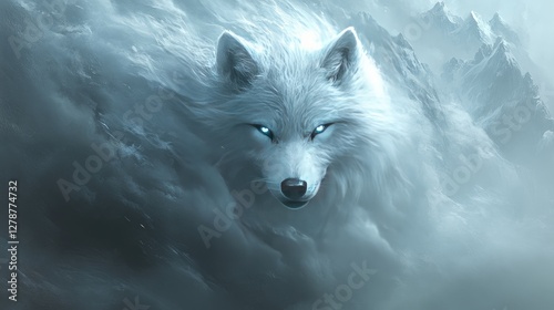Obraz premium Majestic White Wolf in Snowy Mountains Fantasy Art