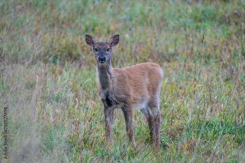 Fototapeta premium Majestic whitetail deer in a sunlit field in Finland.