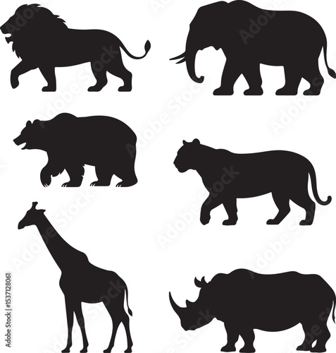 Naklejka premium Majestic Wild Animal Silhouettes African Safari Wildlife Set