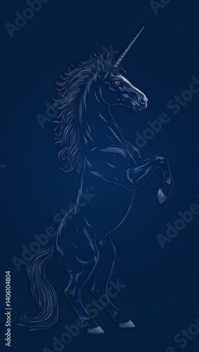 © GMeta, Obraz premium Majestic wild stallion in minimalist style against deep indigo backdrop highlighting its powerful yet noble presence