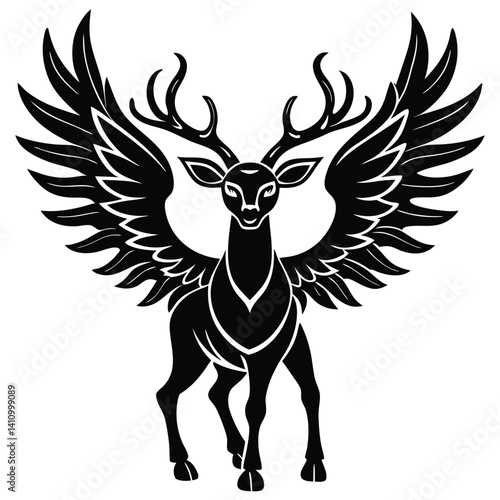 Obraz premium Majestic Winged Stag Silhouette Mythical Fantasy Deer Art Vector