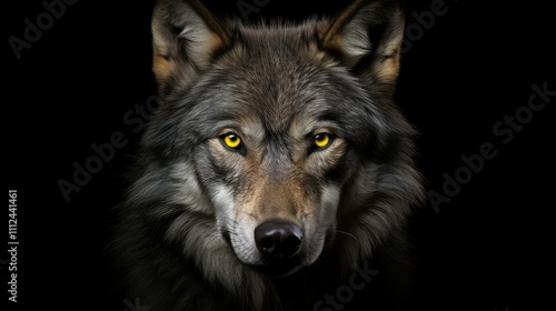 © PikePicture, Obraz premium majestic wolf black background