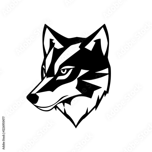 Fototapeta premium Majestic Wolf Head: Black and White Vector Graphic, Wild Animal Portrait, Canine Design