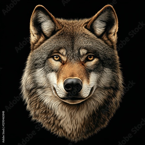 Fototapeta premium Majestic Wolf Head Detailed Portrait Against a Dark Backdrop Intense Gaze and Noble Expression