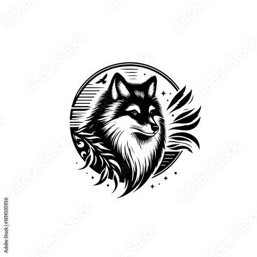 © Md, Fototapeta premium Majestic Wolf Head Emblem with Tribal Elements.