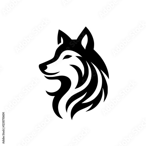 © MatandSterre, Obraz premium Majestic Wolf Head Logo Design: Black and White Vector Graphic