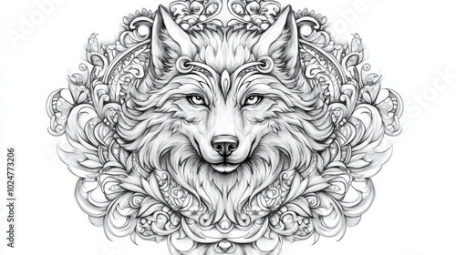Fototapeta premium Majestic Wolf Head with Floral Ornament. Detailed Illustration for Tattoo,...
