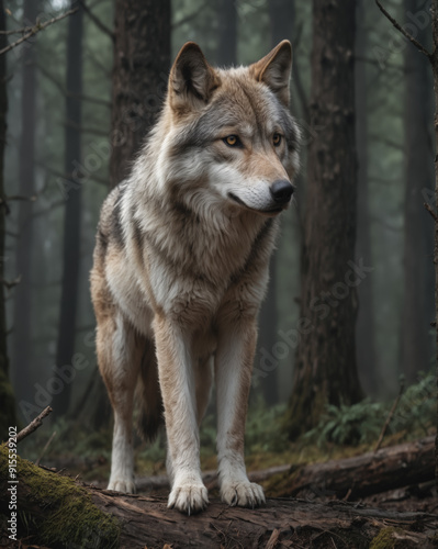 Obraz premium Majestic Wolf in Misty Forest