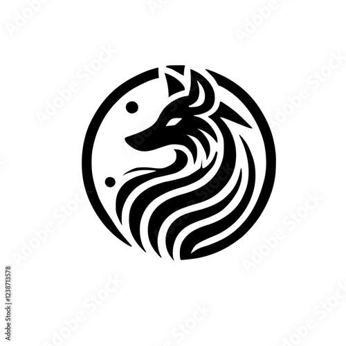 Naklejka premium Majestic Wolf Logo: Black and White Abstract Animal Design