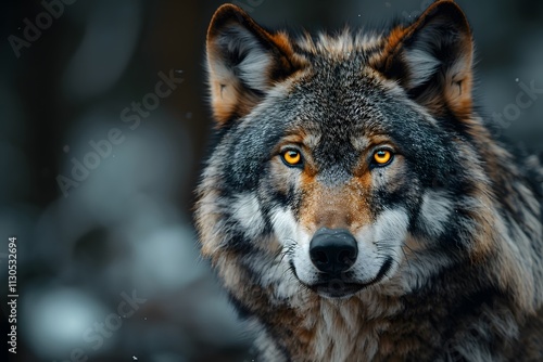 © D, Fototapeta premium Majestic Wolf Portrait in Winter Forest Highlighting Fierce Beauty