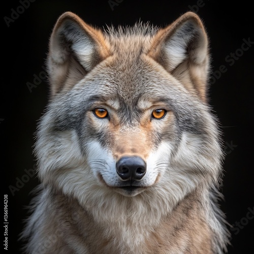 © Ferry, Fototapeta premium Majestic Wolf Portrait with Intense Gaze on Dark Background Staring