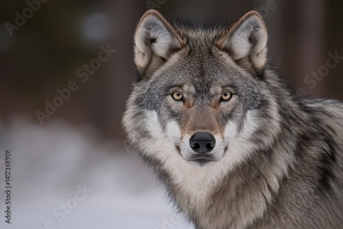 © warunthorn, Fototapeta premium Majestic Wolf Staring Intently in Snowy Wilderness Landscape