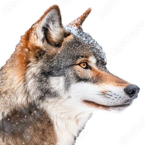 © Maestro, Fototapeta premium Majestic wolf with snow on its fur in winter