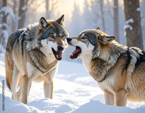Naklejka premium Majestic wolves in a snowy winter landscape
