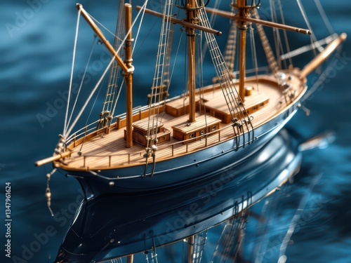 © alfrian sutria, Obraz premium Majestic Wooden Ship Against the Horizon