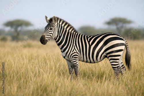 © imagemir, Fototapeta premium Majestic Zebra Stands Proudly in a Golden Grassland