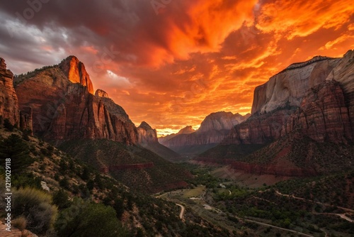 © Sirinporn, Fototapeta premium Majestic Zion National Park Silhouette at Sunset - Dramatic Landscape Photography
