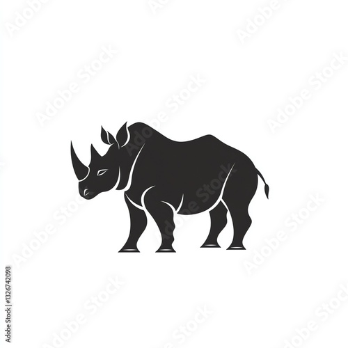 Fototapeta premium MajesticRhinoSilhouetteAgainstWhiteBackground,StrongAndPowerfulAnimalGraphicD...