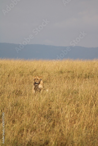 © Andrei, Naklejka premium Majestosos leões selvagens descansando e interagindo em meio à savana africana, mostrando força, comportamento social e a beleza da vida animal em liberdade