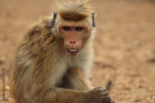© tigerlily86, Fototapeta premium Makake streckt Zunge raus