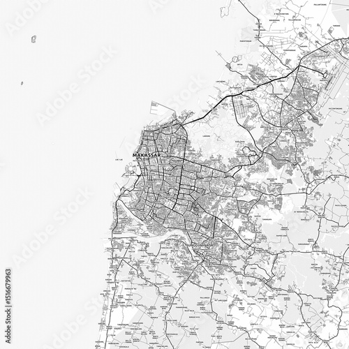 © Knut Hebstreit, Fototapeta premium Makassar Area Map with Labels and Neighborhoods - One color, minimalistic design