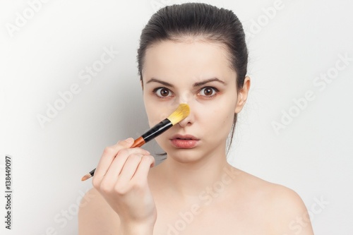 Fototapeta premium make-up brush and a woman with fair complexion