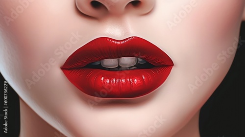 © Kateryna Kordubailo, Obraz premium Make up of woman with red lips. Generative AI