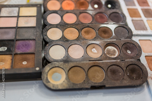 © Ivan, Naklejka premium makeup accessories, brushes, palette, make-up and make-up. working environment of make-up artist. makeup background.