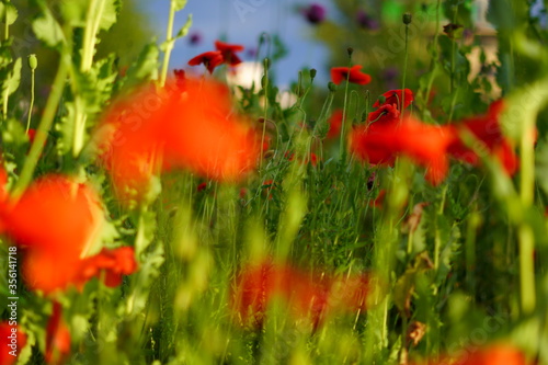 Fototapeta premium Maki,Łąka,Zieleń,Kwiat,Natura
