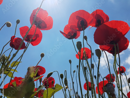 Obraz premium maki niebo upword słońce na białym tle w niebieskim tle