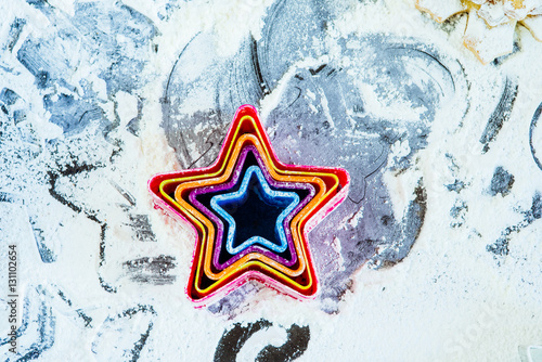 Fototapeta premium Making cookies as christmas gift, sugar powder and cookies cutter and cooking...