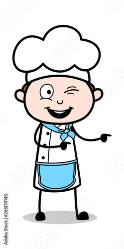 Obraz premium Making Fun and Winking Eye - Cartoon Waiter Male Chef Vector Illustration