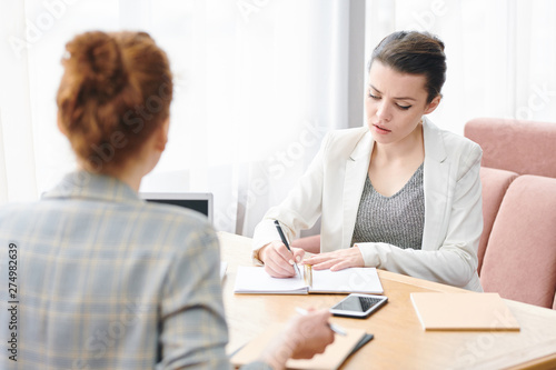 © pressmaster, Obraz premium Making notes about job candidate in cafe