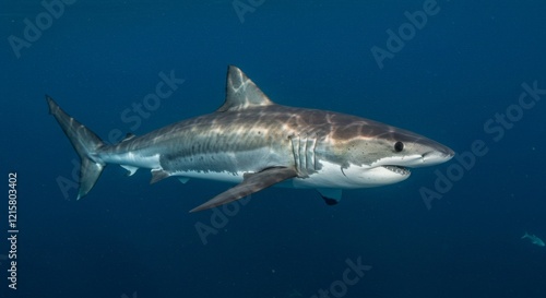 Obraz premium Mako shark in deep blue sea, hunting for prey