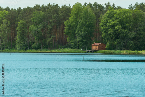 © boguslavus, Obraz premium Mała, drewniana chatka nad jeziorem.