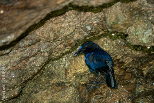 © karthick, Obraz premium Malabar whistling thrush sitting on the top of a cave
