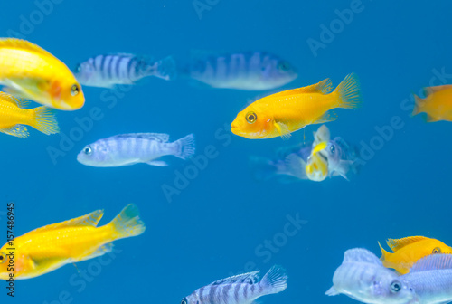 Naklejka premium Malawi cichlids,Tropical fish in aquarium