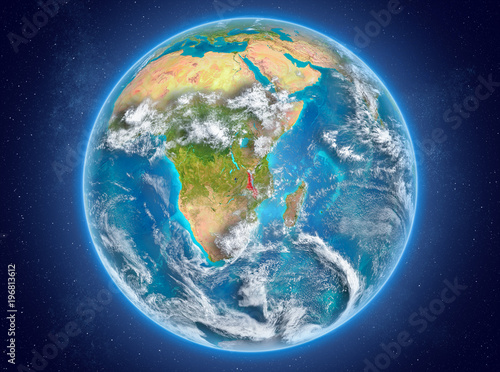 Fototapeta premium Malawi on planet Earth in space