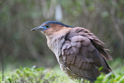© Cheng, Fototapeta premium Malayan Night Heron standing alert on the ground in Taipei, Taiwan
