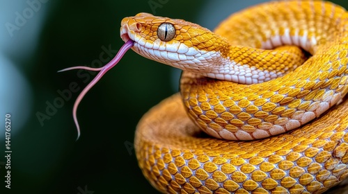 Obraz premium Malayan pit viper coiled in nature close-up photography tropical environment...