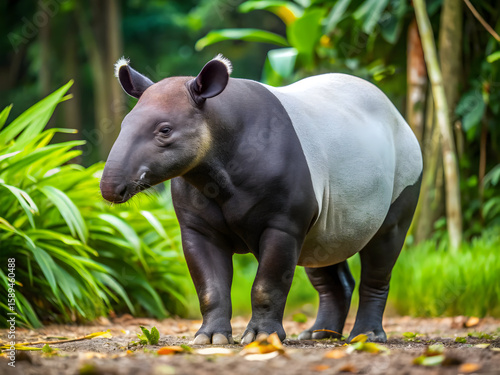 © NOR ALAM, Fototapeta premium Malayan tapir walking through tropical forest