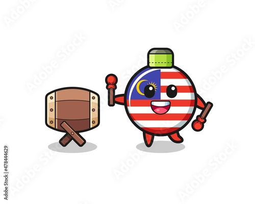 Fototapeta premium malaysia flag muslim cartoon is beating the bedug