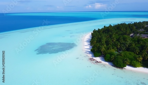 © Sam, Obraz premium Maldives Paradise: Aerial View of Pristine Beach & Turquoise Waters