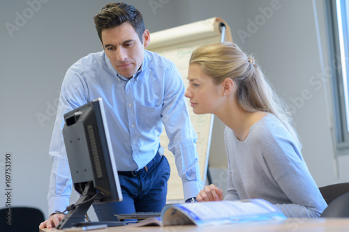 © auremar, Fototapeta premium male and female it programmers testing new software application